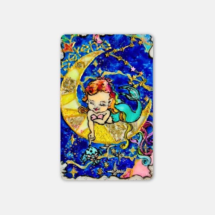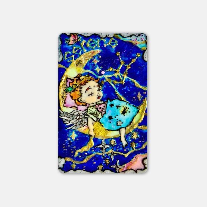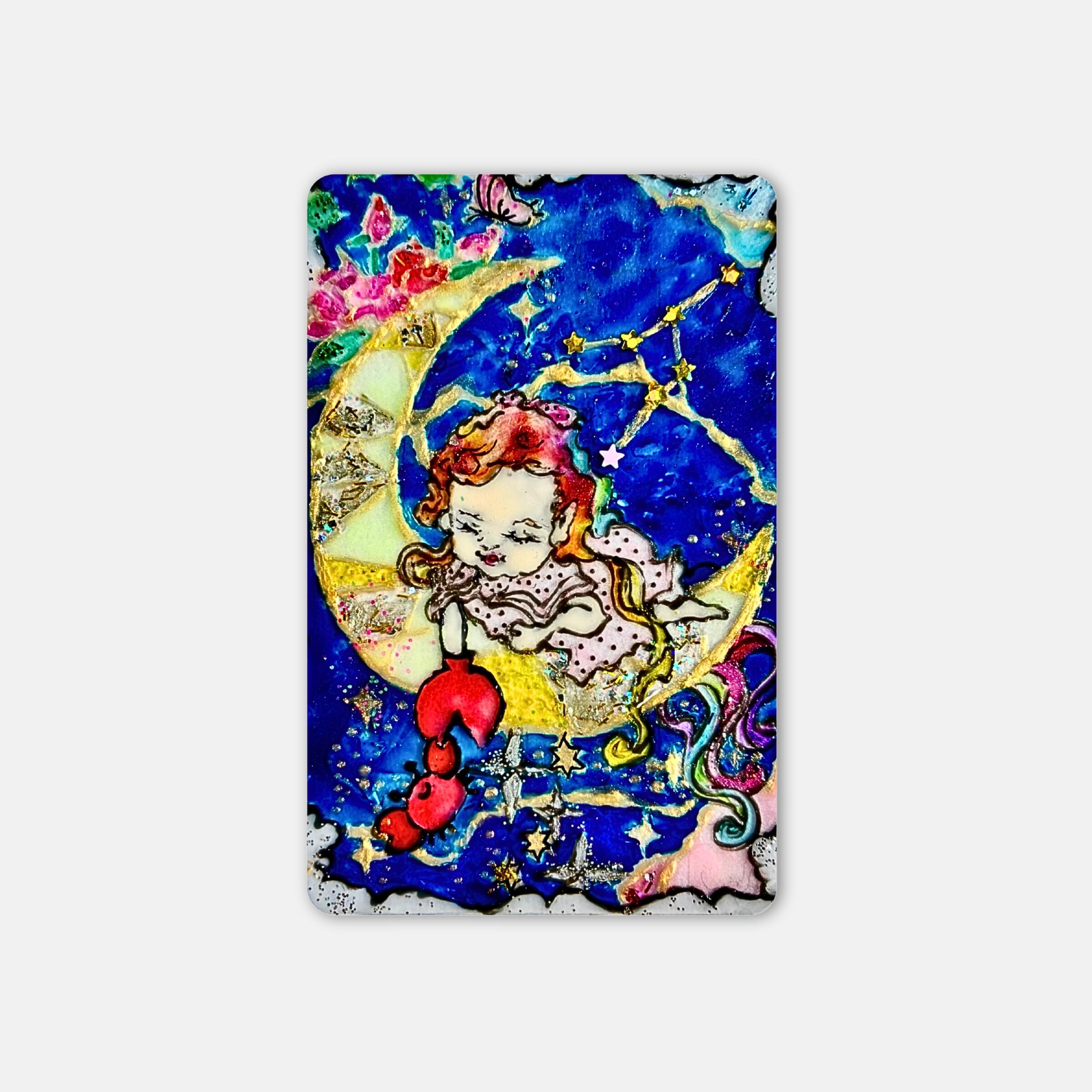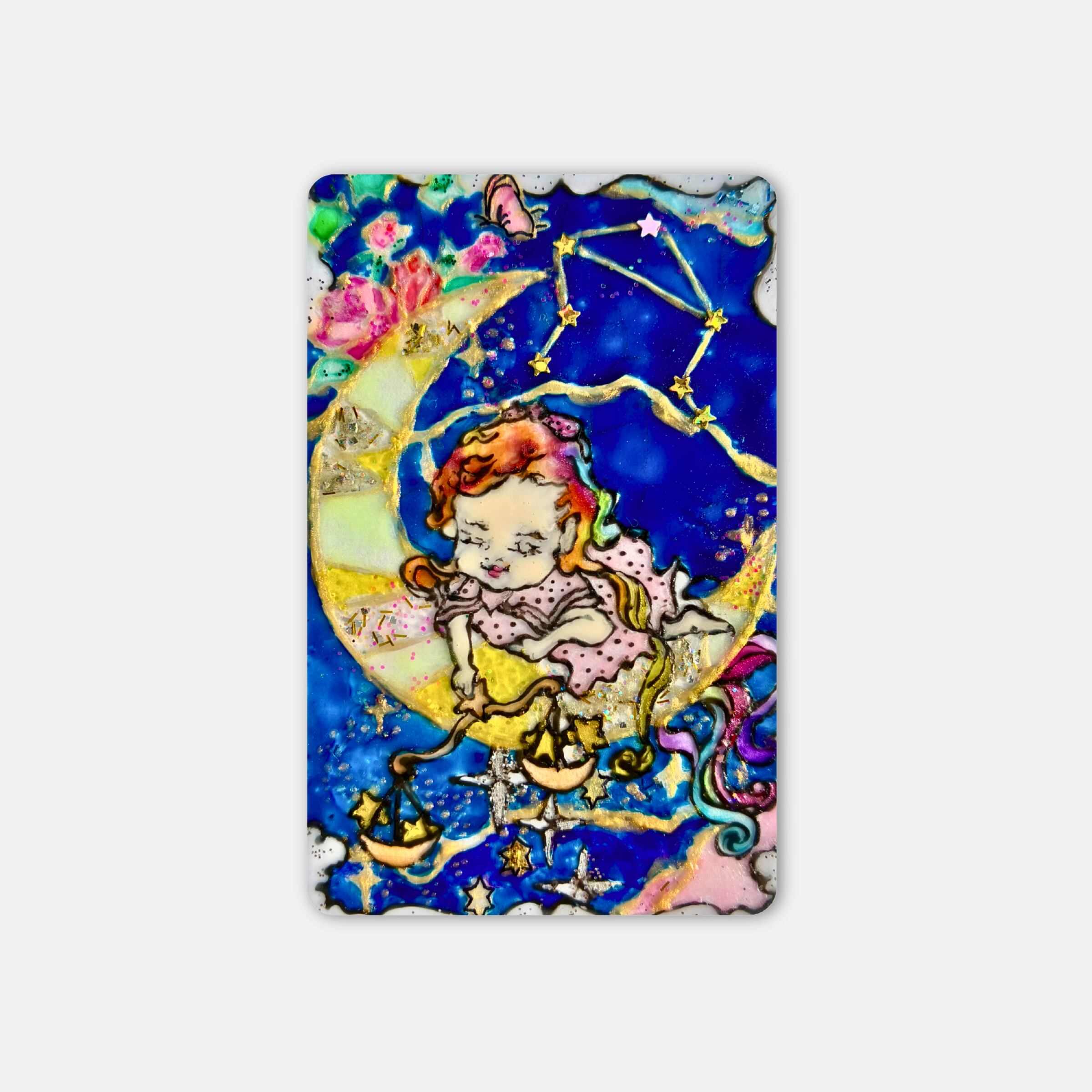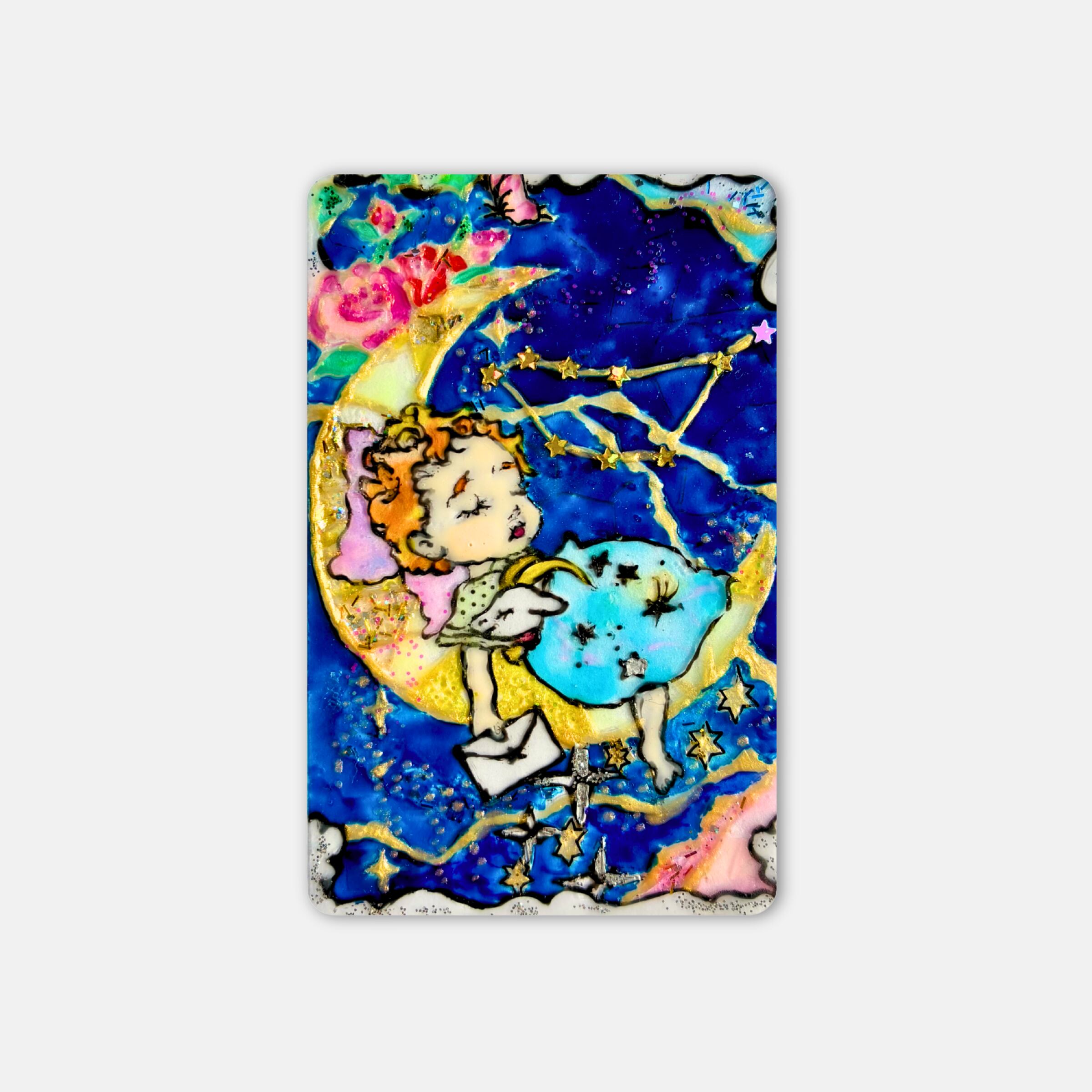 カードサイズのコンパクトなアートだからこそ、キーホルダーとしてカバンや鍵につけても、スマホカバーにいれてもOK。いつでもどこでも、光と一緒に持ち歩けるお守りに。