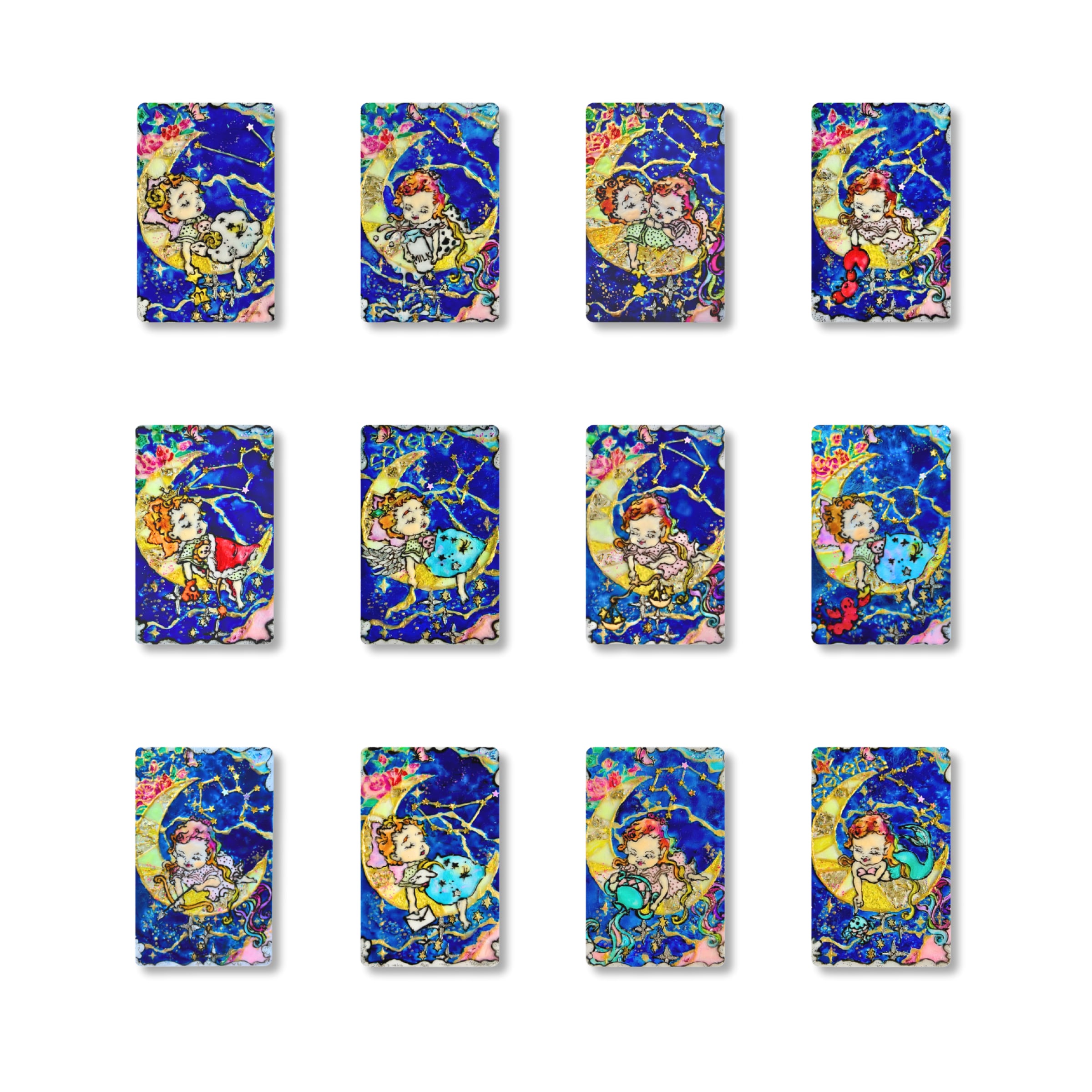 当店自慢の「透明のステンドグラス風アート」から、初のオリジナルテンプレート商品となる「12星座シリーズ」が登場しました。光を透かしたようなキラキラの独特の透明感溢れる色彩と、手描きによる温かみが融合した世界にひとつだけの原画アート。