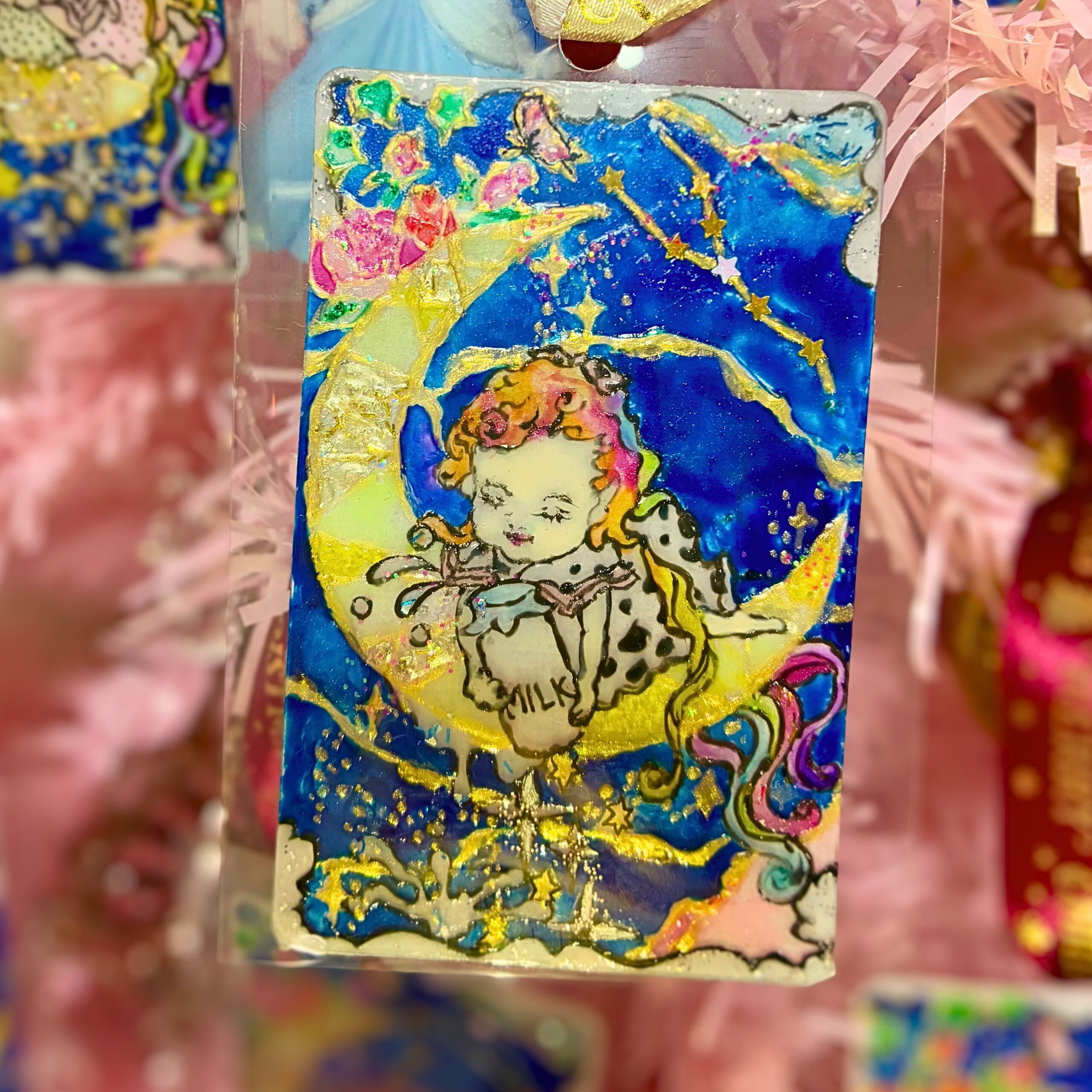 カードサイズのコンパクトなアートだからこそ、キーホルダーとしてカバンや鍵につけても、スマホカバーにいれてもOK。いつでもどこでも、光と一緒に持ち歩けるお守りに。