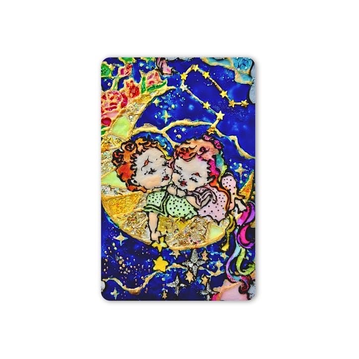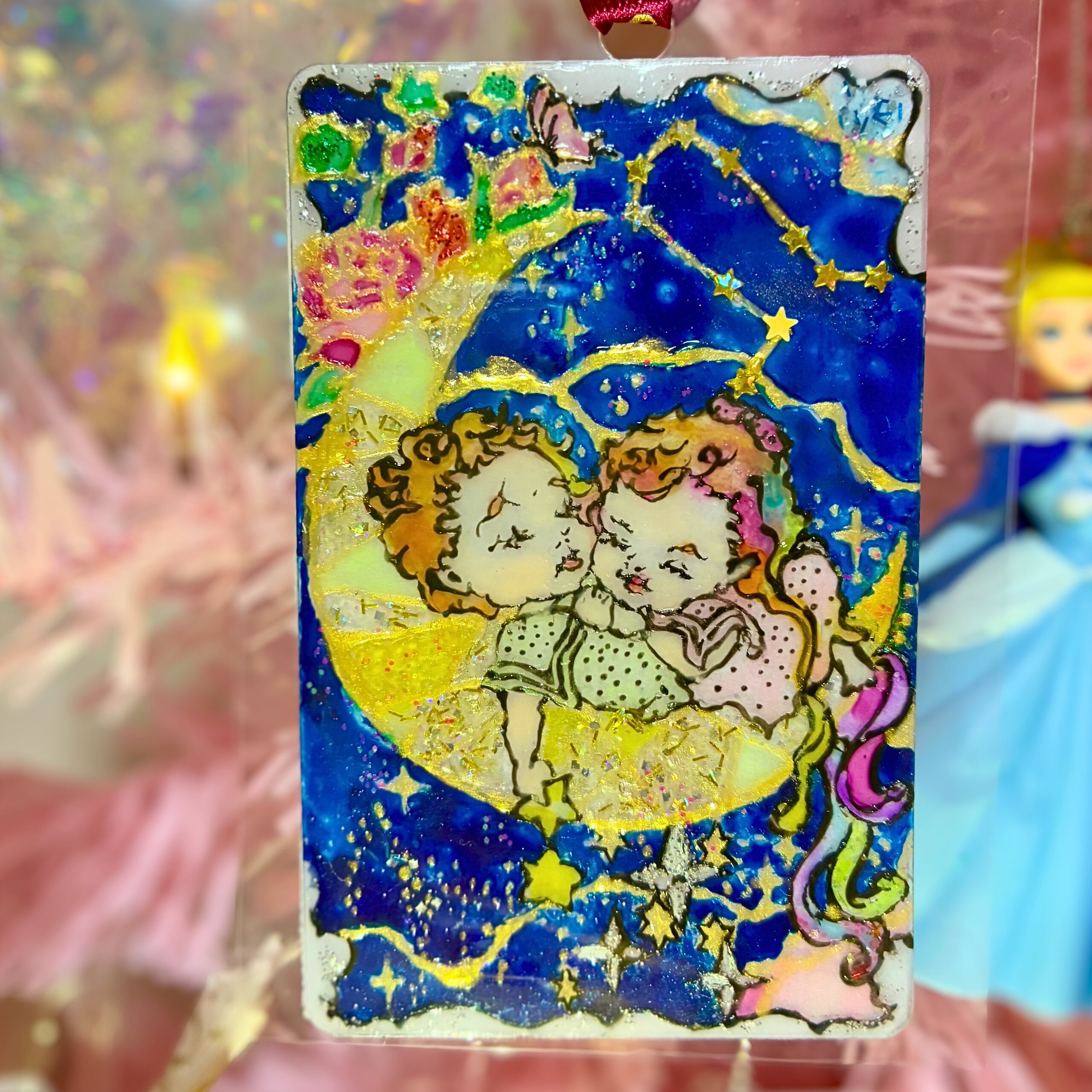 【ふたご座】星座似顔絵キーホルダー|透明のステンドグラス風アート・イラストカード・誕生日・出産祝い・入園入学祝い・お守りギフト