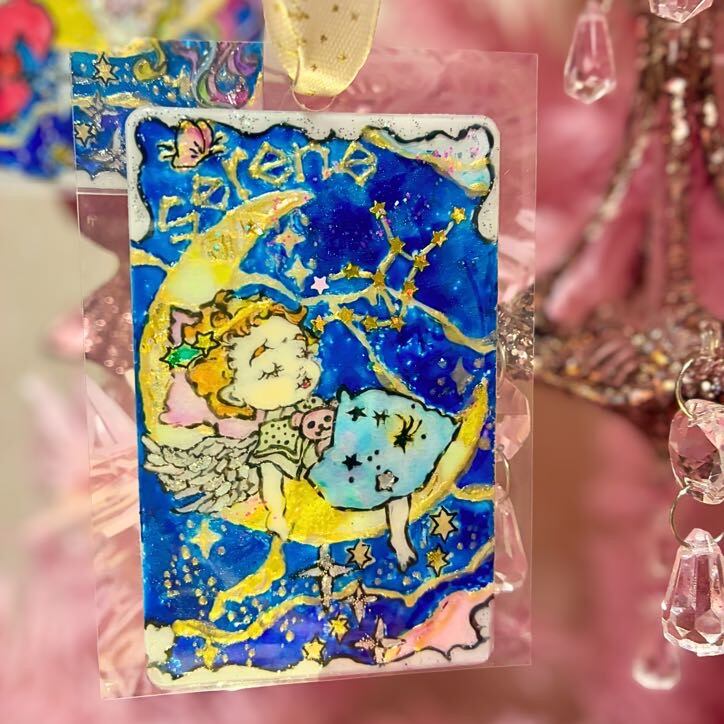 カードサイズのコンパクトなアートだからこそ、キーホルダーとしてカバンや鍵につけても、スマホカバーにいれてもOK。いつでもどこでも、光と一緒に持ち歩けるお守りに。